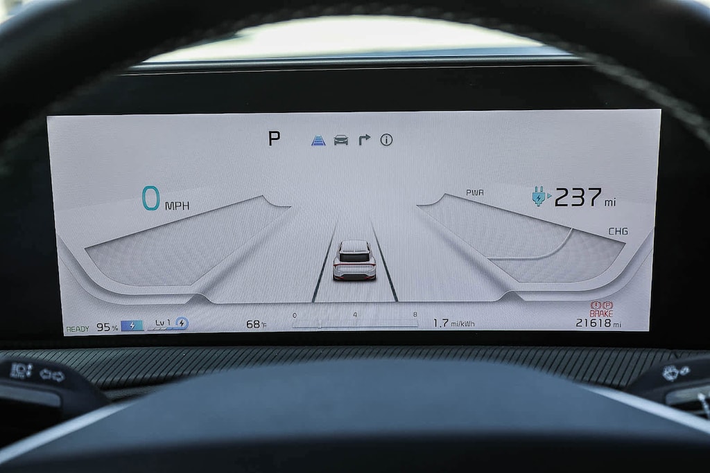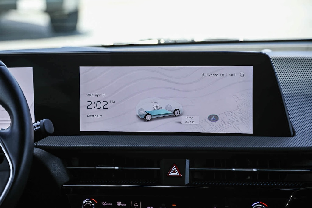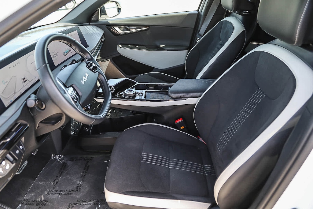 Navigation, Sunroof, Power Liftgate, Heated Driver Seat, Cooled Driver Seat, Back-Up Camera, Premium Sound System, Satellite Radio, iPod/MP3 Input, Onboard Communications System, Aluminum Wheels, Remote Engine Start, Dual Zone A/C, Cross-Traffic Alert, Smart Device Integration. Rear Spoiler, MP3 Player, Remote Trunk Release, Keyless Entry, Privacy Glass. Kia GT-Line with Snow White Pearl exterior and Black interior features a Electric Motor.